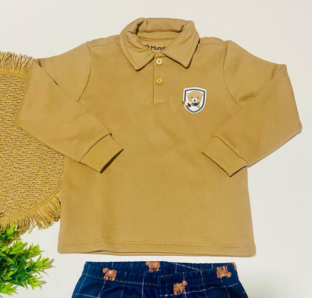Faça seu pequeno brilhar com o conjunto infantil da Mundi! Confeccionado em moletom macio, este conjunto oferece todo o conforto que ele precisa. O blusão apresenta um divertido aplique termocolante de ursinho e botões para abertura parcial, facilitando o vestir e despir. A calça quadriculada, estampada com adoráveis ursinhos, completa o look com estilo. Perfeito para brincadeiras ou um passeio no parque, esse conjunto garante liberdade de movimento e um visual super charmoso.